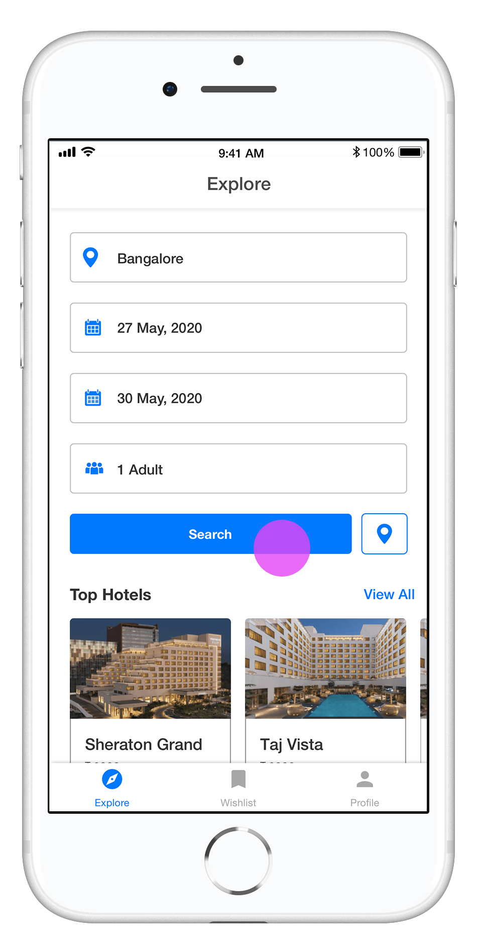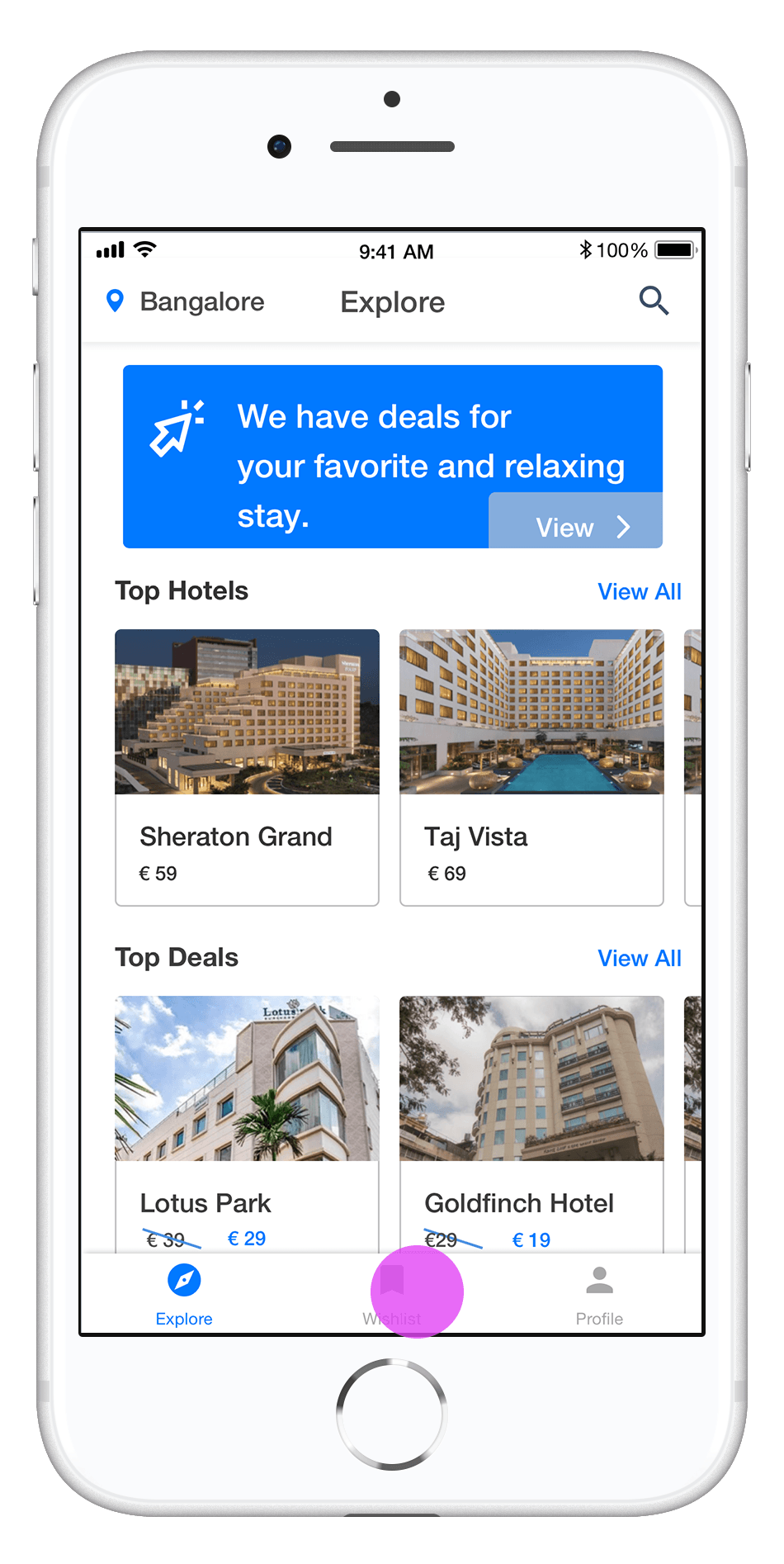 - Explore – After search (Top Hotels, Top Deals, Last Minute)