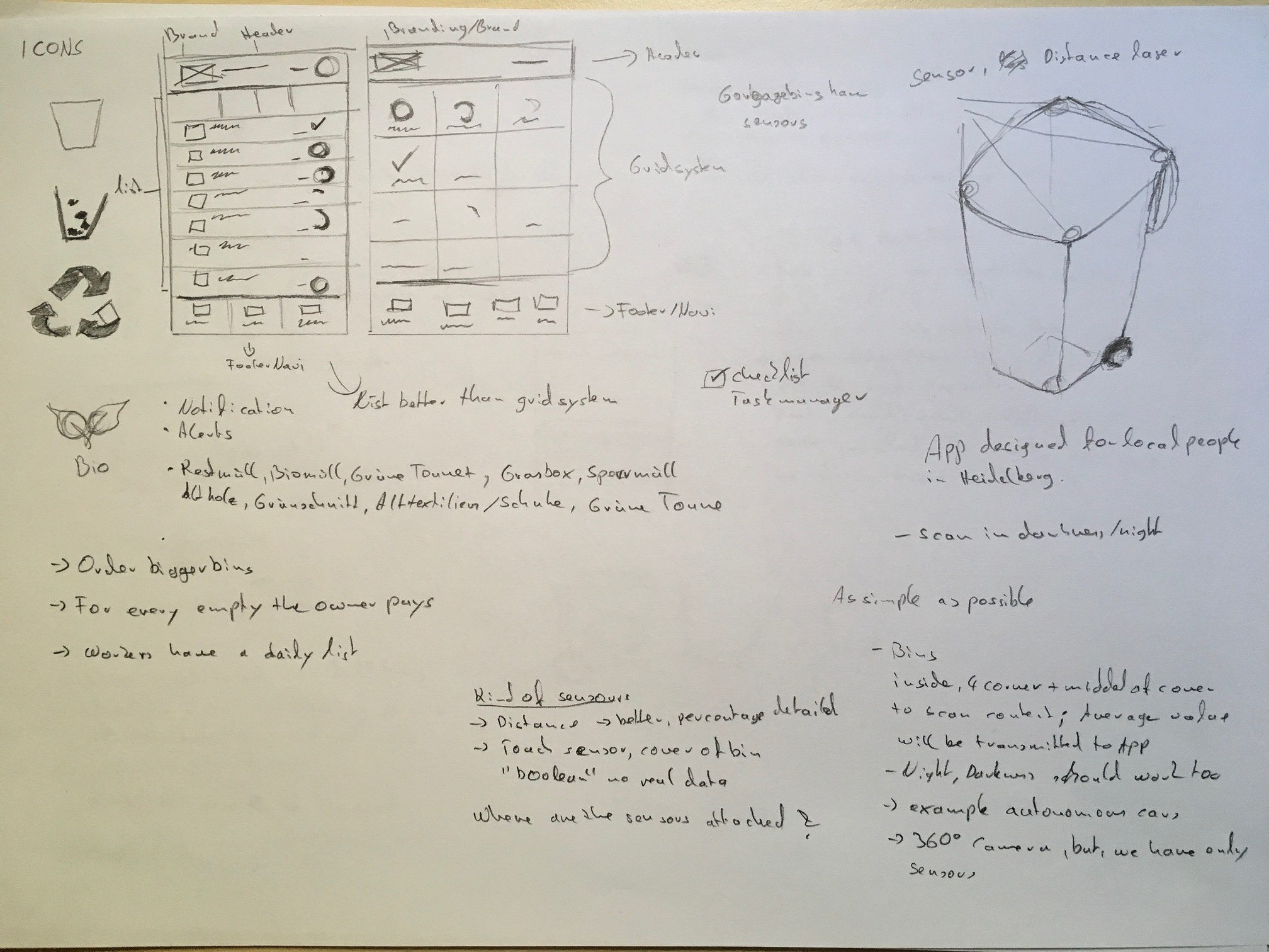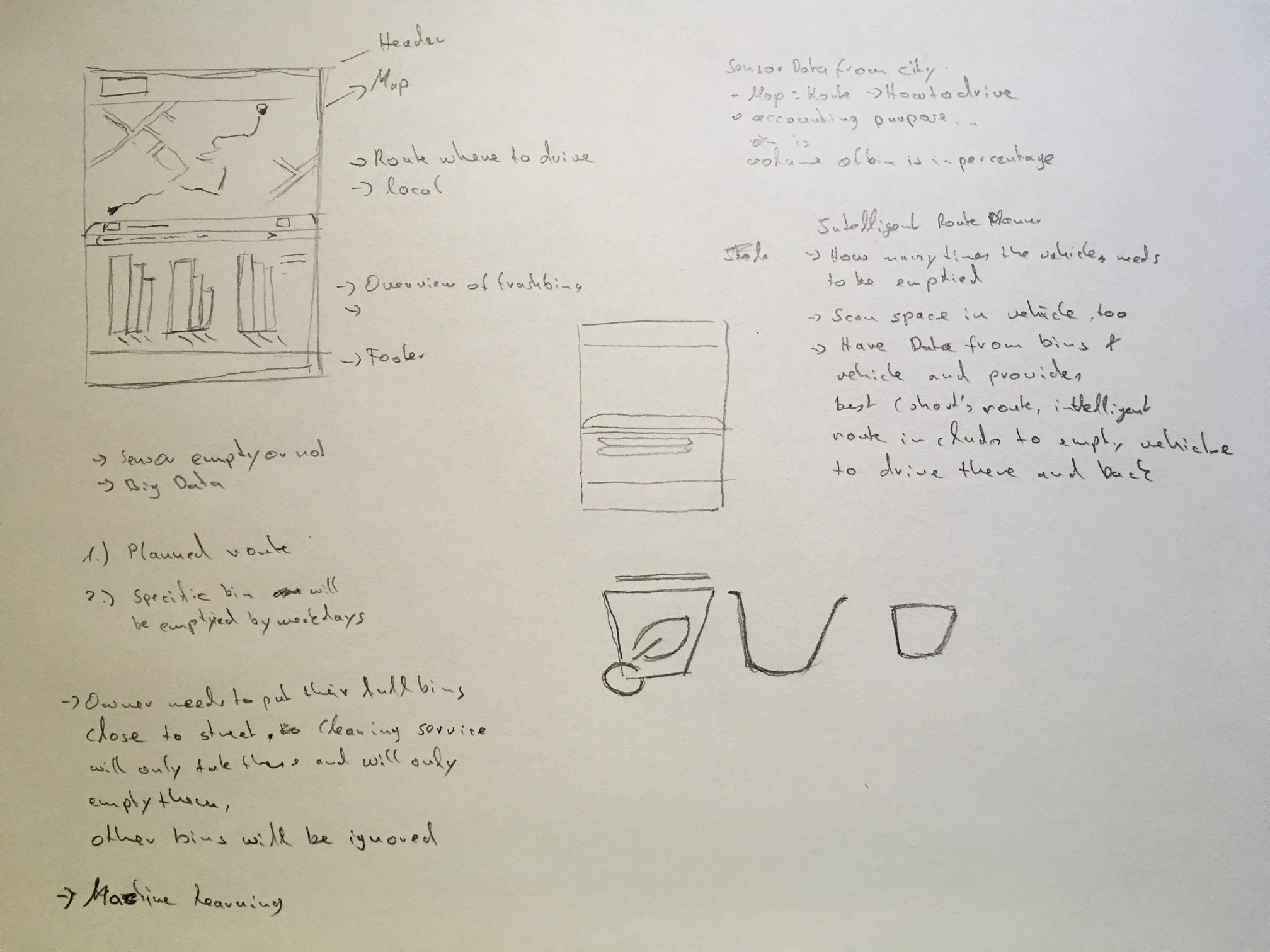The Goal: A route map which guides Town Cleaning Services through the traffic and avoids traffic jams, because of the IOT (AI) Artificial Intelligence solution. Furthermore, the bins have a device which detects and measures if they are full and needs to be emptied or not. In addition, the sensor can detect bins which are broken and needs to be repaired. This concept works with realtime data and different functionalities of maps.